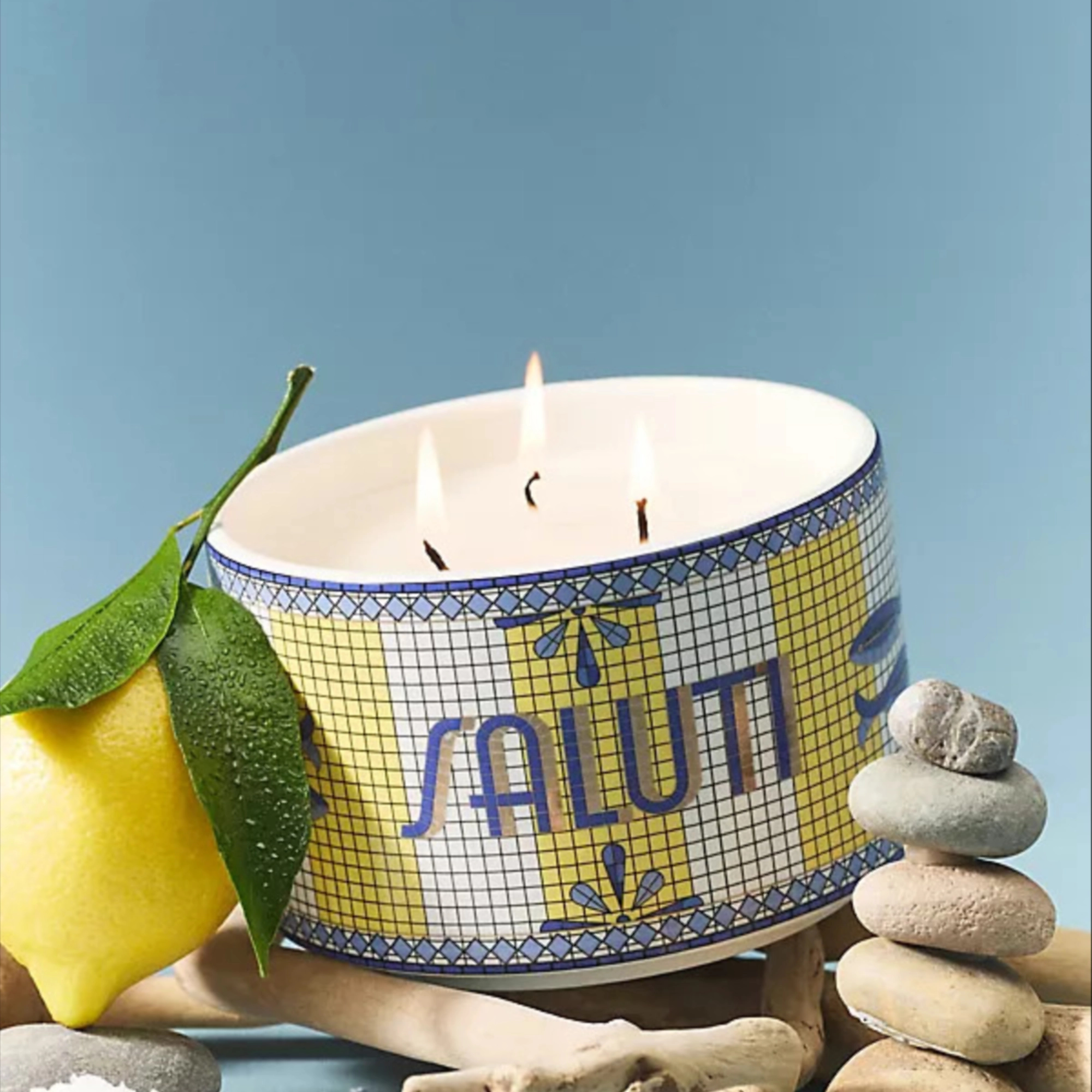 Bistro Tile Floral Saluti 24k Gold Accent Ceramic Candle: Italia Edition