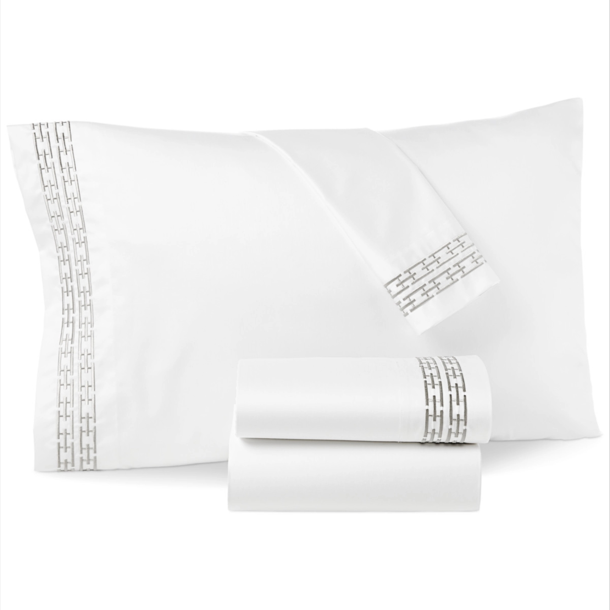 Hotel Collection Chain Links Embroidered 100% Pima Cotton Pillowcase, King, Exclusively at Macy’s – Silver