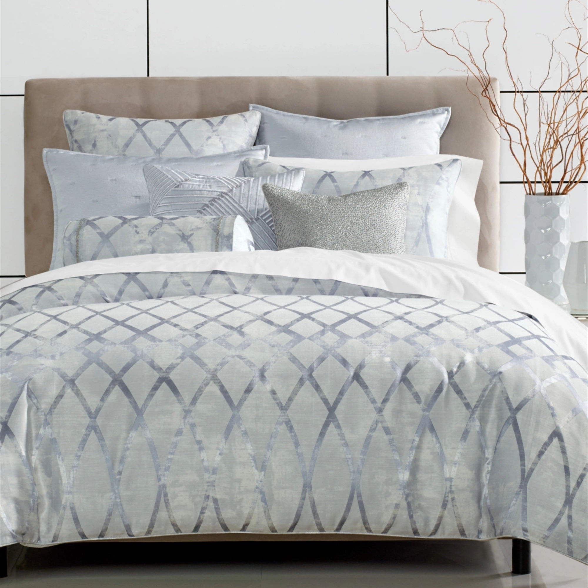 Hotel Collection Linear Ogee 3-Pc. Duvet Cover Set, Full/Queen, Exclusively at Macy’s – Silver