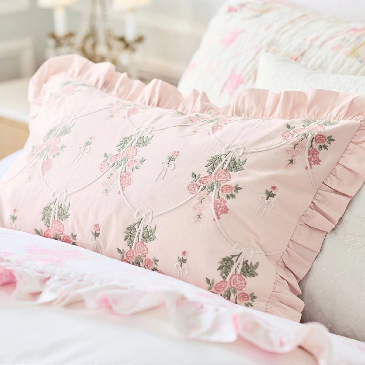 LoveShackFancy Embroidered Bows and Flowers Pillow Cover, 16″ x 26″