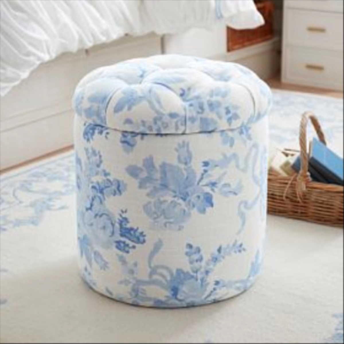 LoveShackFancy Garden Damask Pink Tufted Round Storage Ottoman Garden Damask Pink
