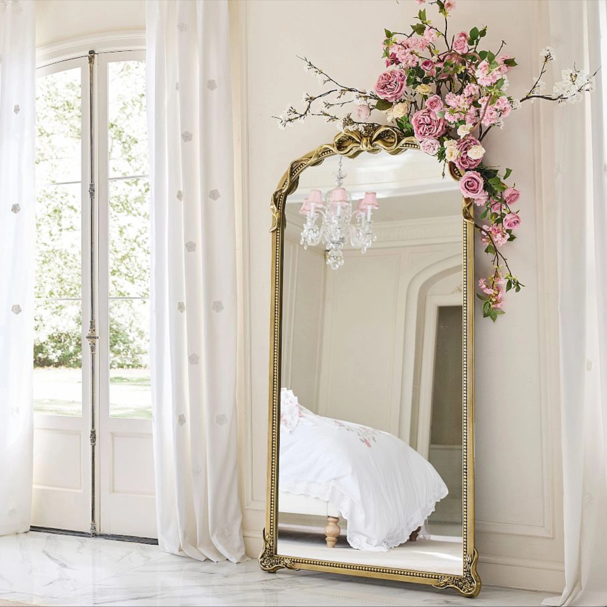 LoveShackFancy Gold Bow Floor Mirror