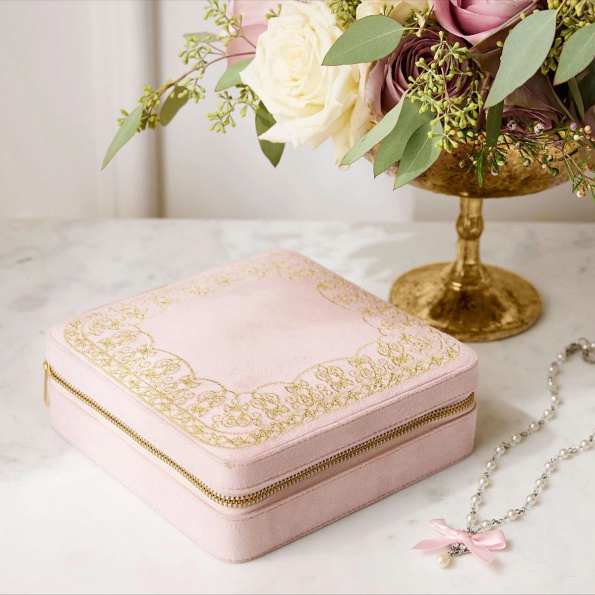 LoveShackFancy Velvet Embroidered Jewelry Box
