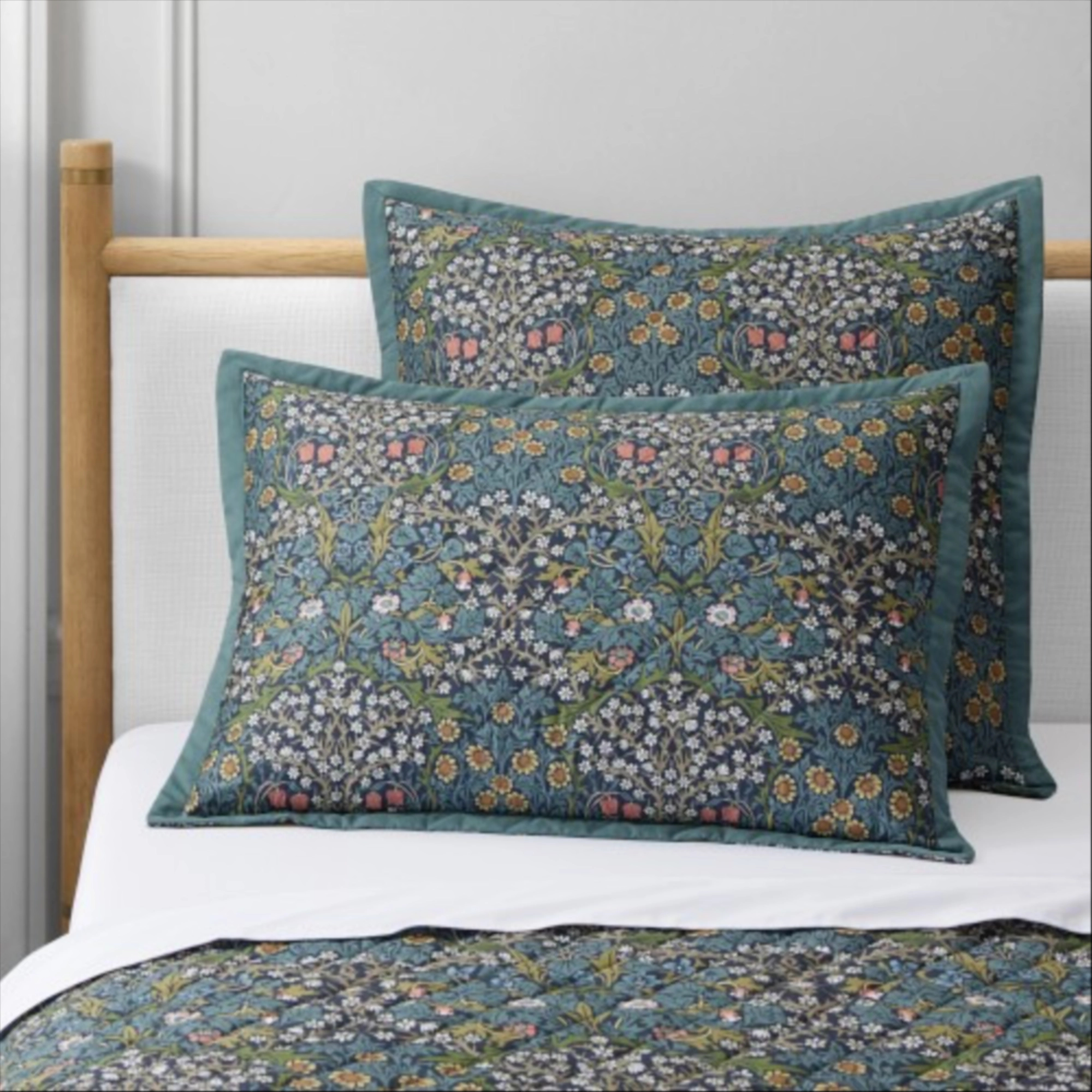 Morris & Co Blackthorn Quilt & Shams, King Sham, Blue