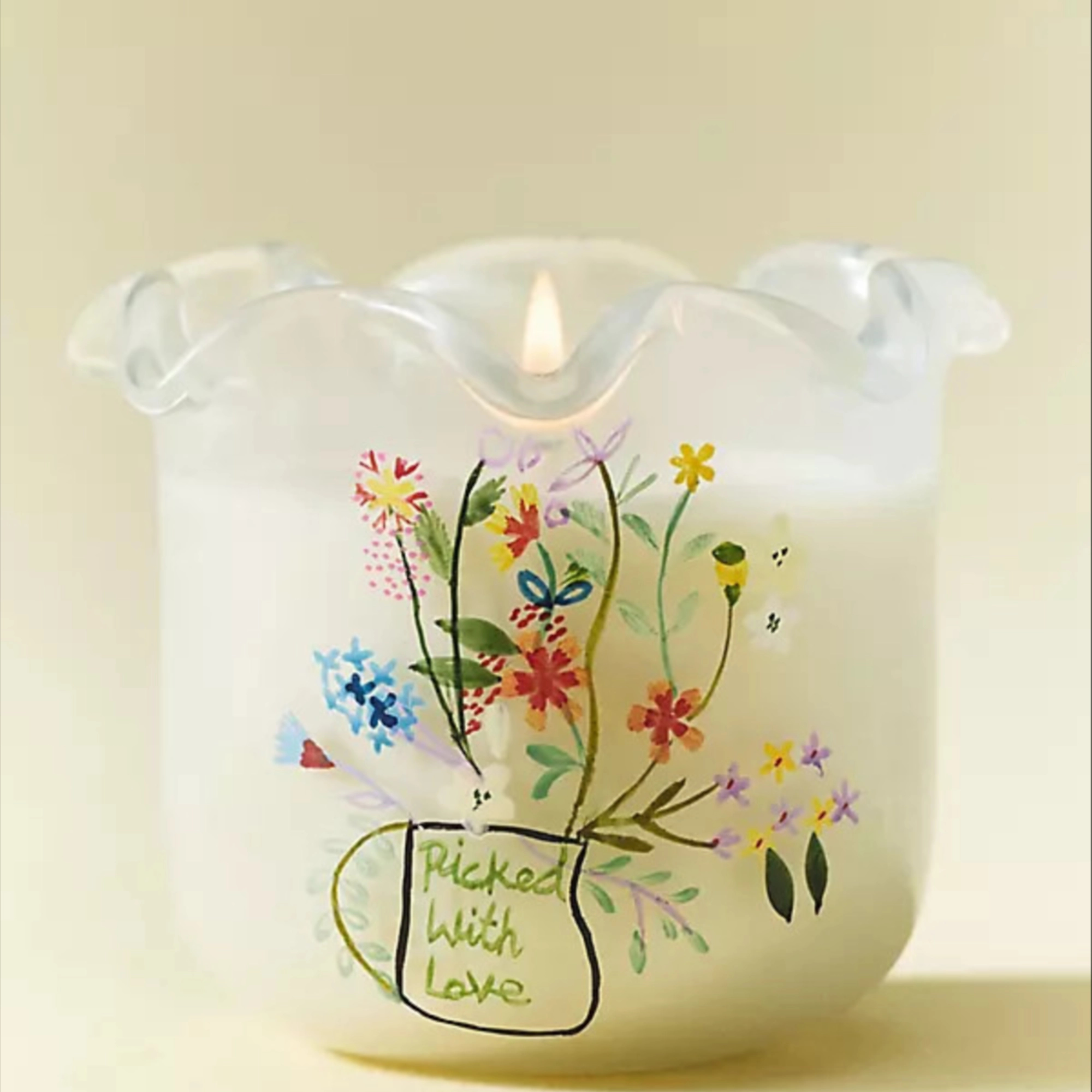 Ruffled Edge Floral Wildflower Bouquet Glass Candle