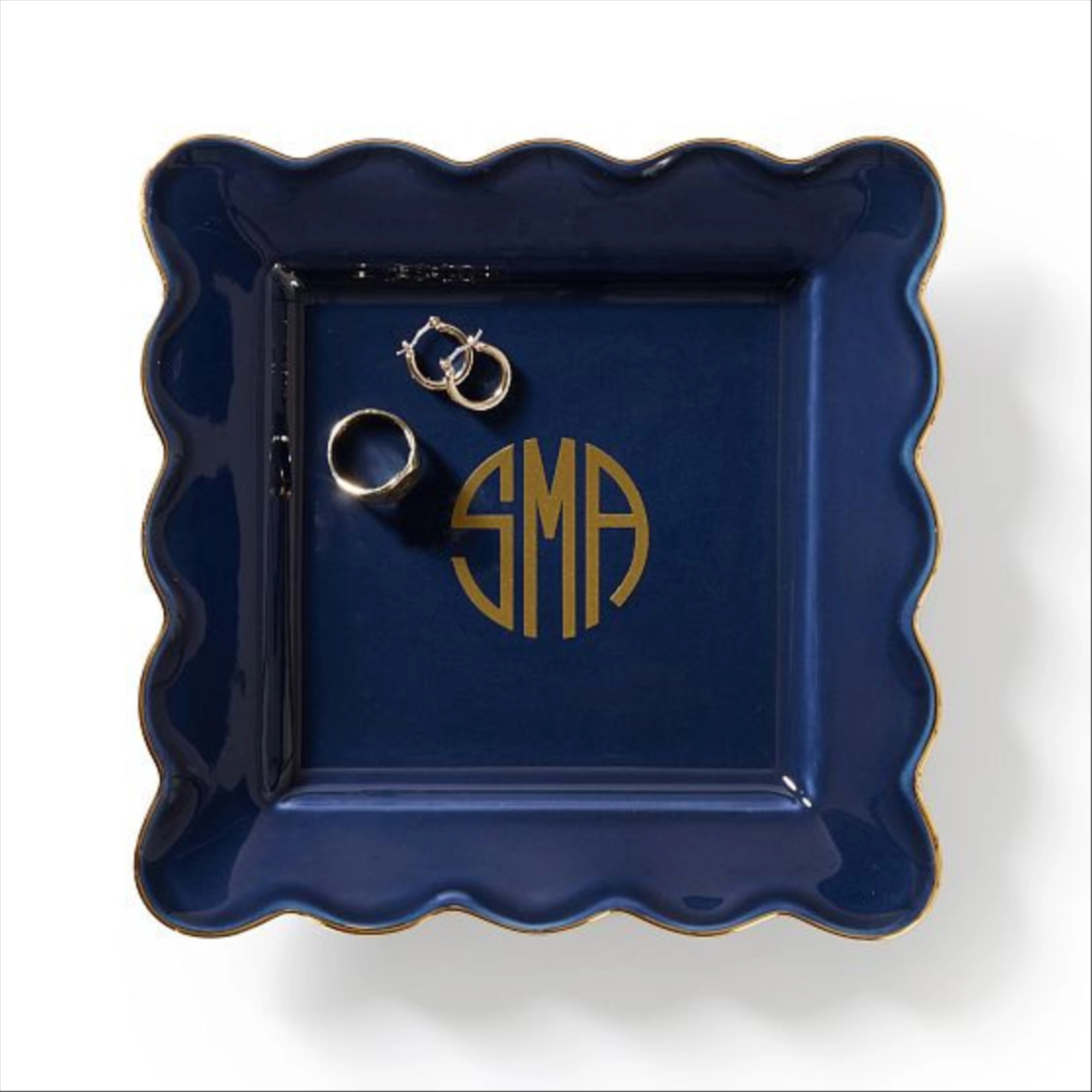 Scalloped Ceramic Catchall, Square, Navy