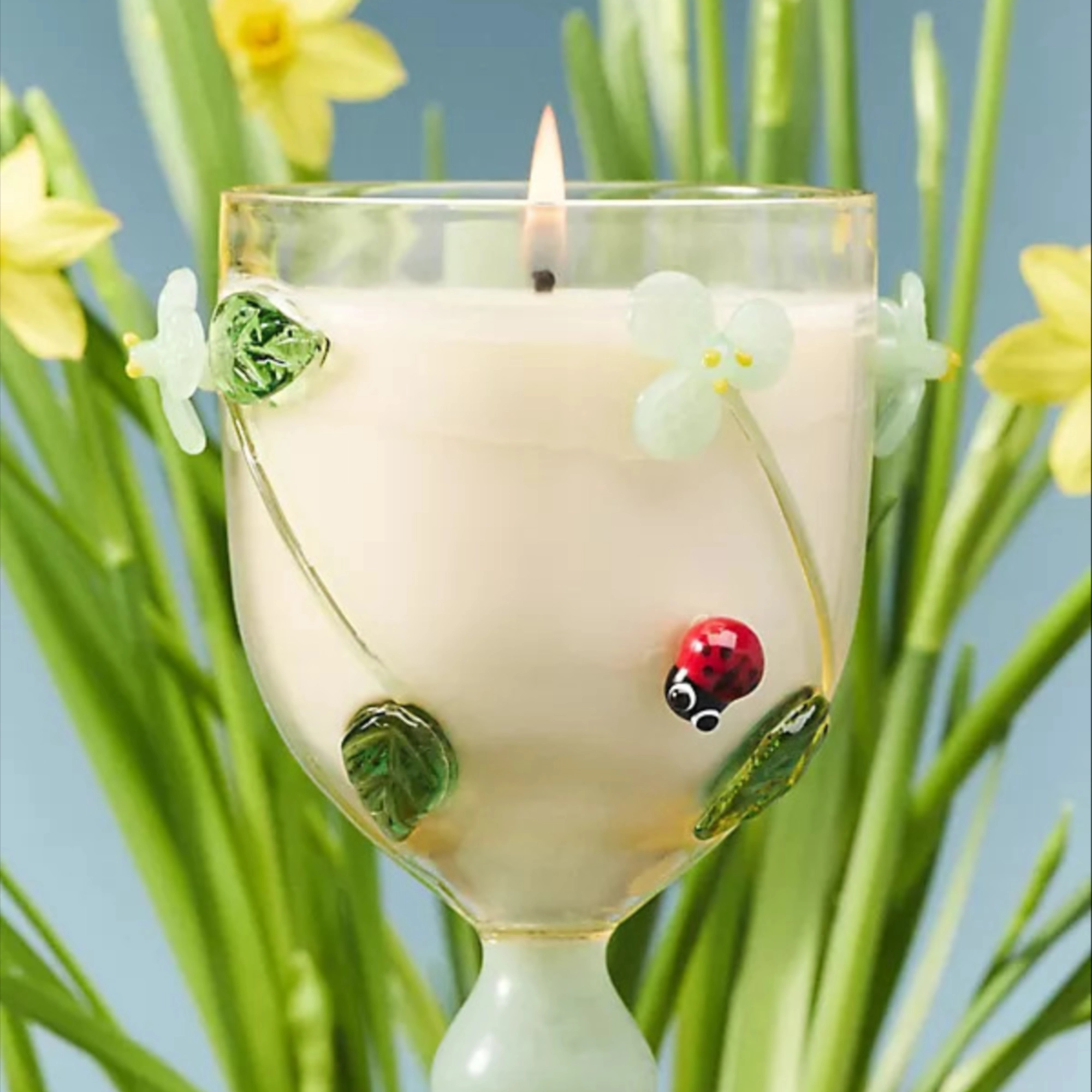 Vined Floral Seaside Flowers & Sandalwood Glass Candle