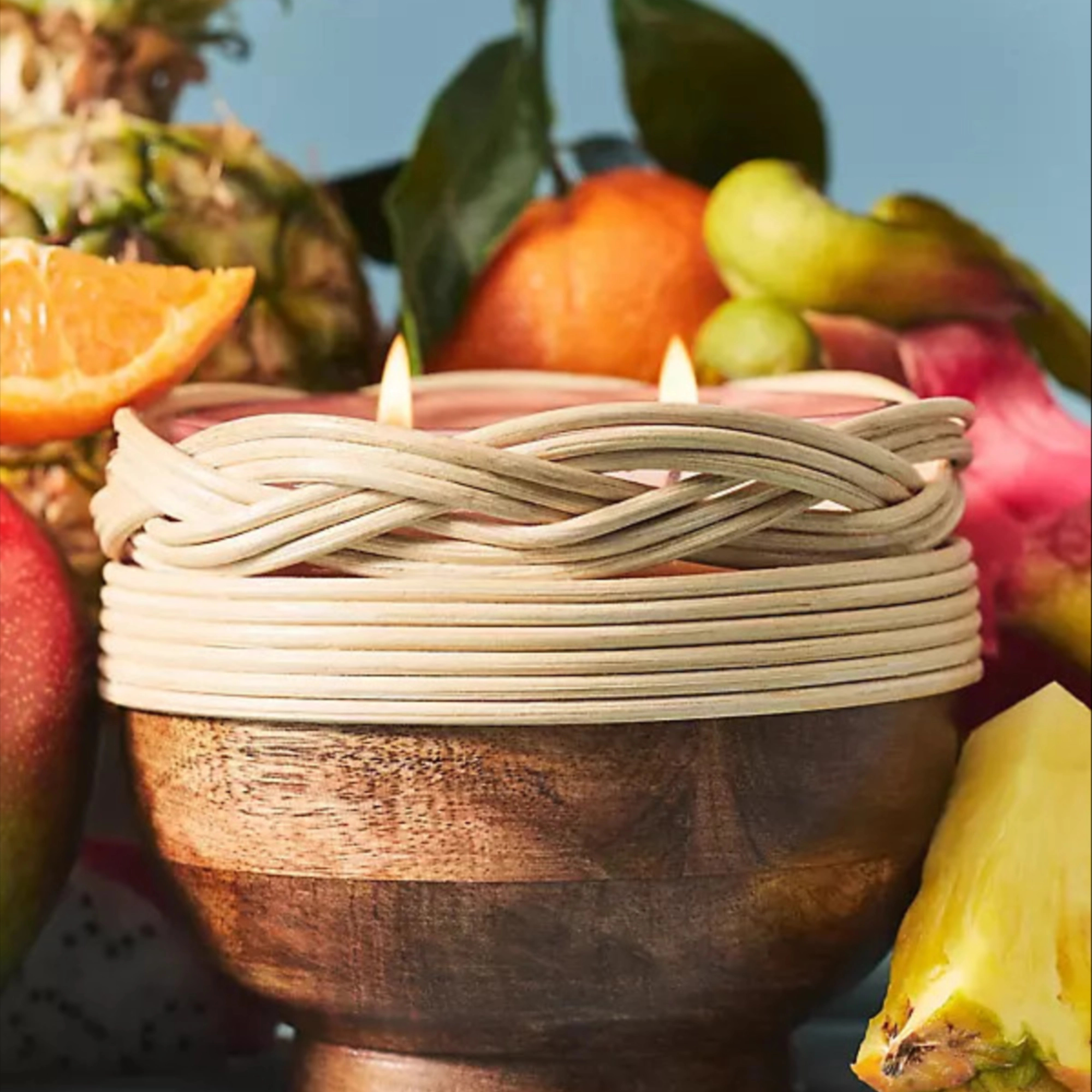 Woven Wood Fruity Dragon Fruit & Mango Glass Candle